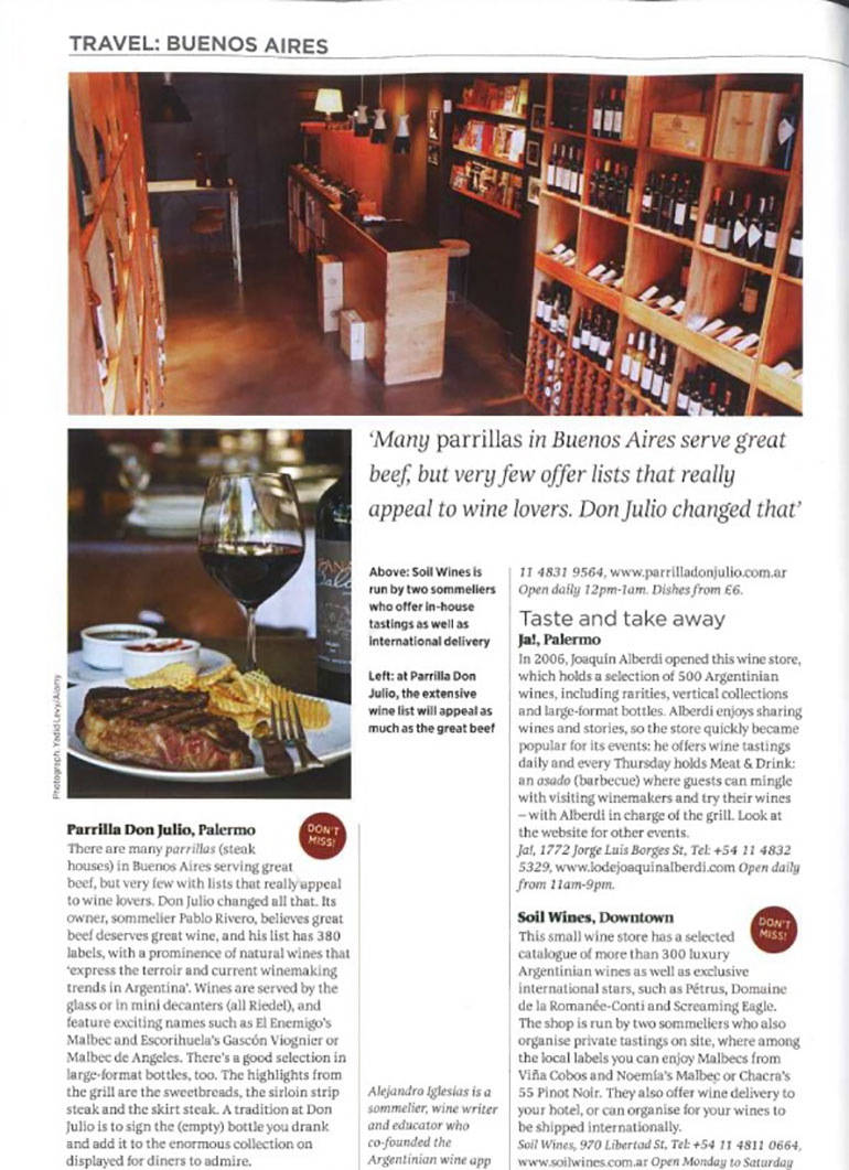 Soil es una vinoteca boutique en el barrio de Recoleta de la Ciudad de Buenos Aires, en la calle M.T. de Alvear 1187, donde se entiende al vino como cultura, conocimiento, placer y encuentro. Atendida por sus dueños, Ezequiel Schneer y Marcelo Yanisky –sommeliers internacionales de extensa trayectoria– quienes proponen un trato diferente y personalizado. En este lugar donde el profesionalismo y la pasión por el vino se combinan por igual, cada persona que ingresa está invitada a conocer una cuidada selección de más de xxx etiquetas de Argentina y del mundo en constante actualización. Se suman catas semanales con expertos del país y del exterior y cursos. Así, desde su apertura en septiembre de 2013, público local y extranjero –amplio y diverso en gustos y saberes– ha transitado una otra vez por la experiencia del vino desde la visión comprometida de Soil con su inconfundible sello de búsqueda, calidad, información y ética, orientada a la producción argentina y de las principales regiones vitivinícolas del mundo. Los esperamos para seguir juntos forjando y recorriendo este fascinante camino.